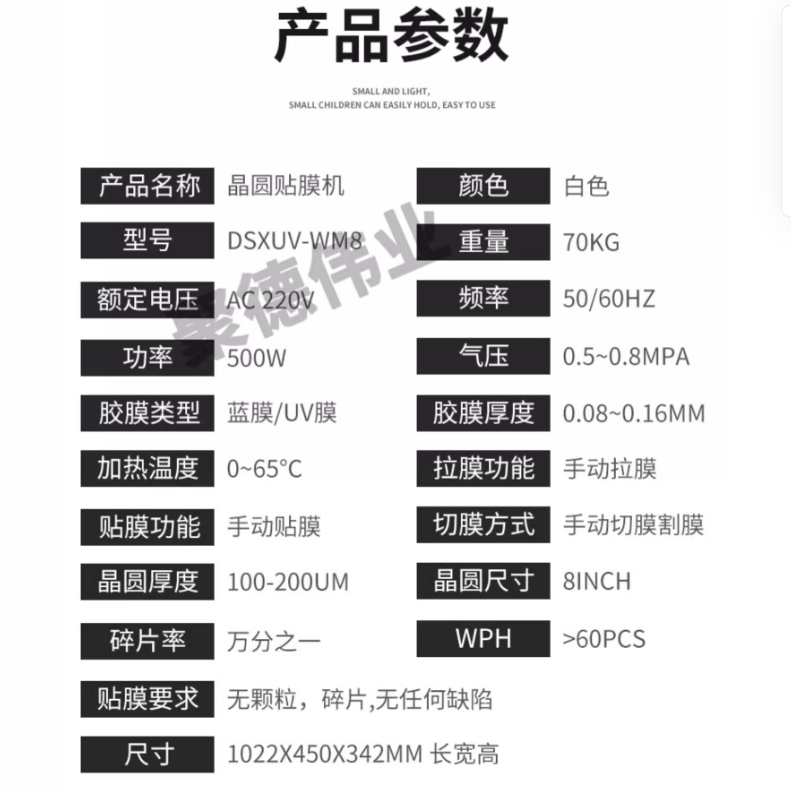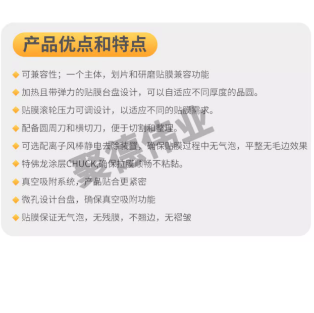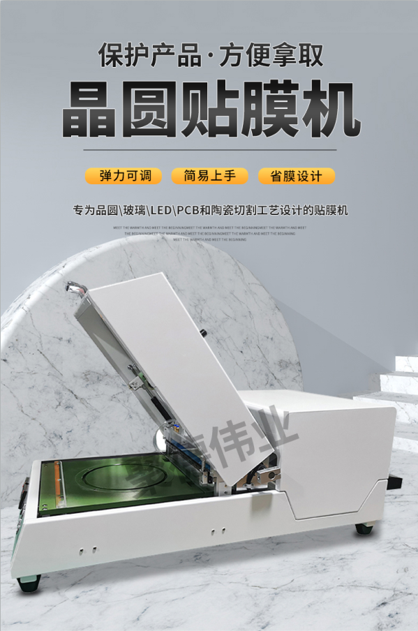 專為晶圓/玻璃/LED/PCB和陶瓷切割工藝設計的貼膜機,用于劃片、研磨前覆膜使用,使晶圓wafer和膜之間貼合更平整