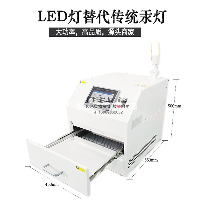 3. 這么小巧,桌上型的機型含有進口冷光源能均勻產生波長350-400nm的燈光照射,消除膠膜的粘膠