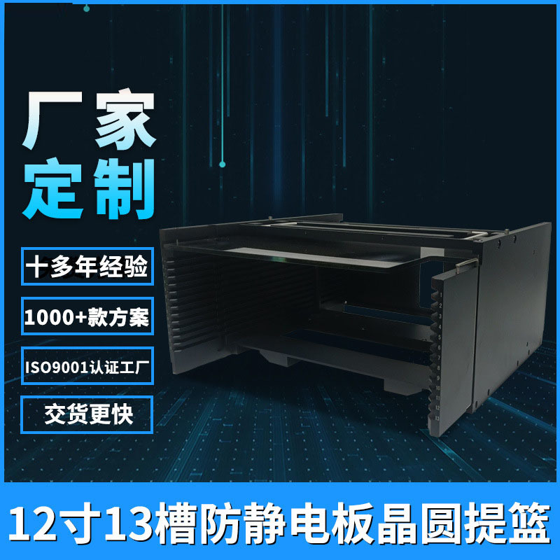 12寸13槽晶圓承載框架盒 6061鋁防脫落檔桿超耐磨防靜電晶圓提籃 作用:晶圓承載途中,防止脫落,損壞