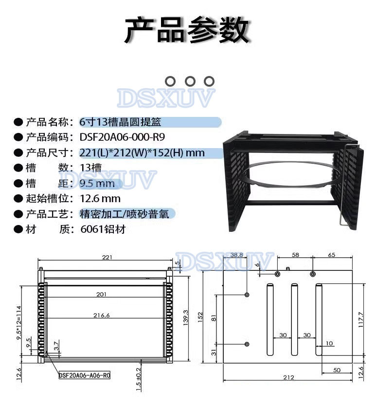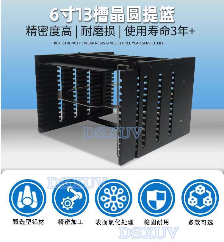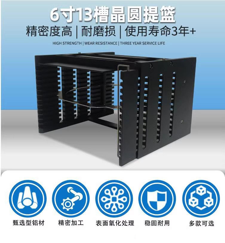 6寸13槽晶圓承載框架盒 6061鋁防脫落檔桿超耐磨防腐蝕晶圓提籃